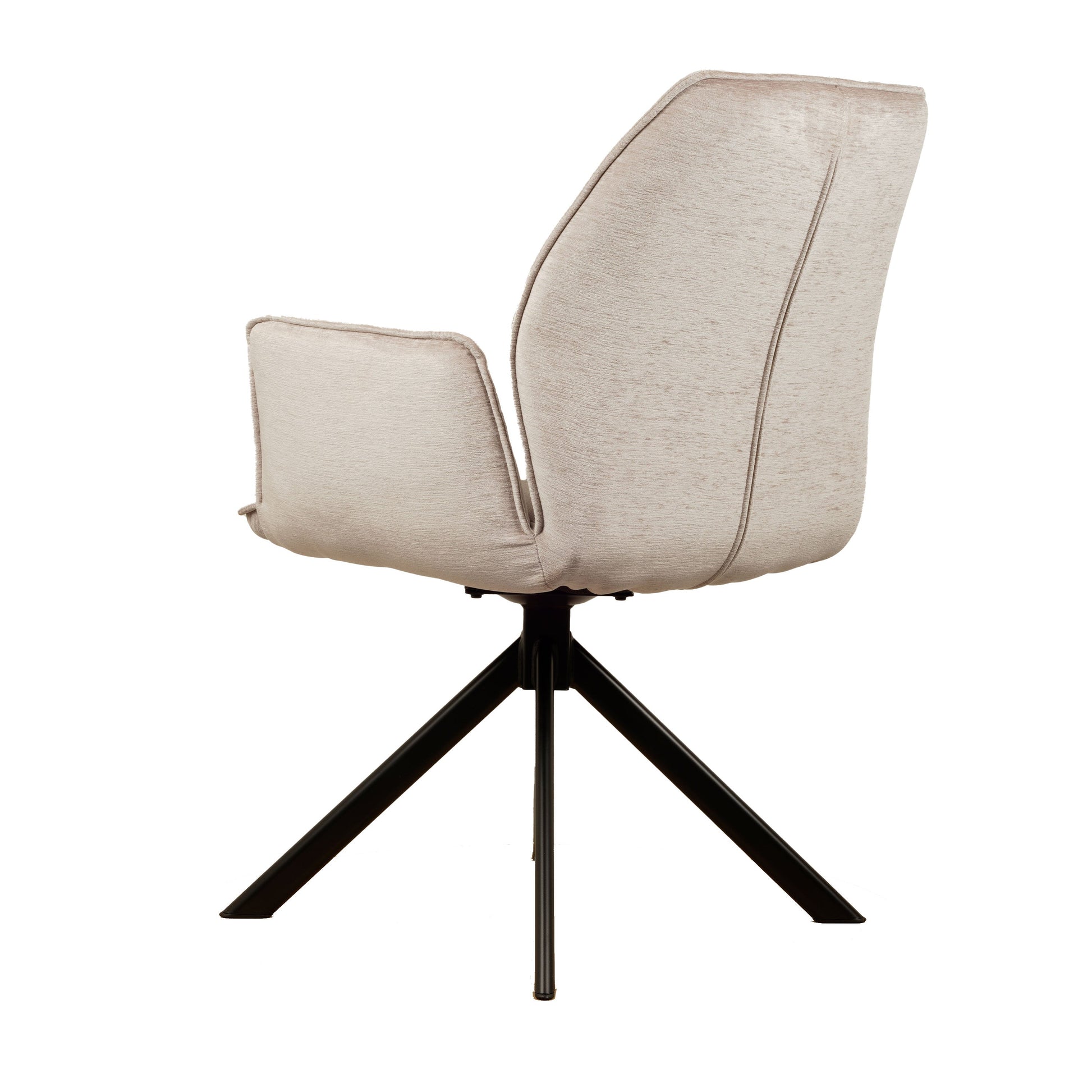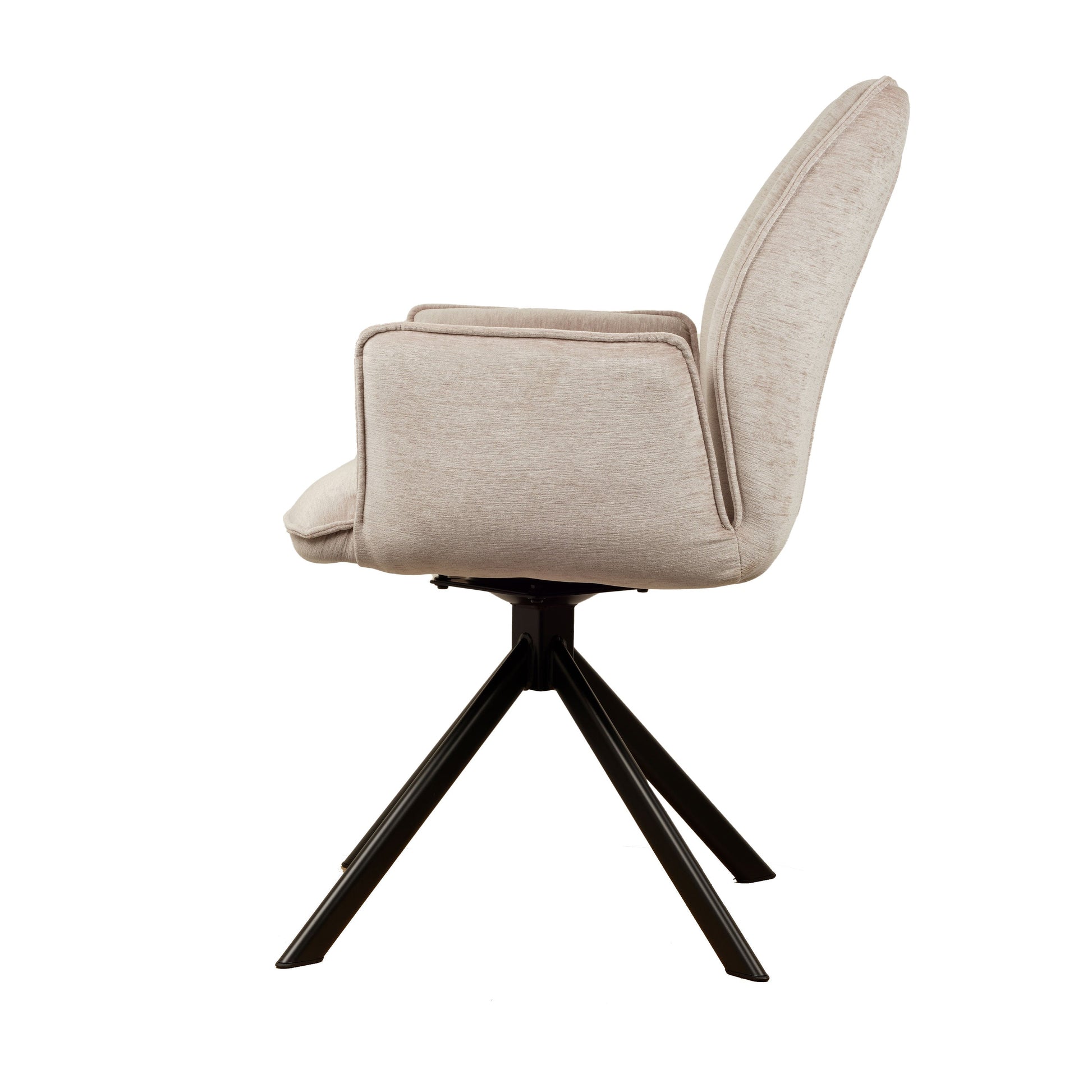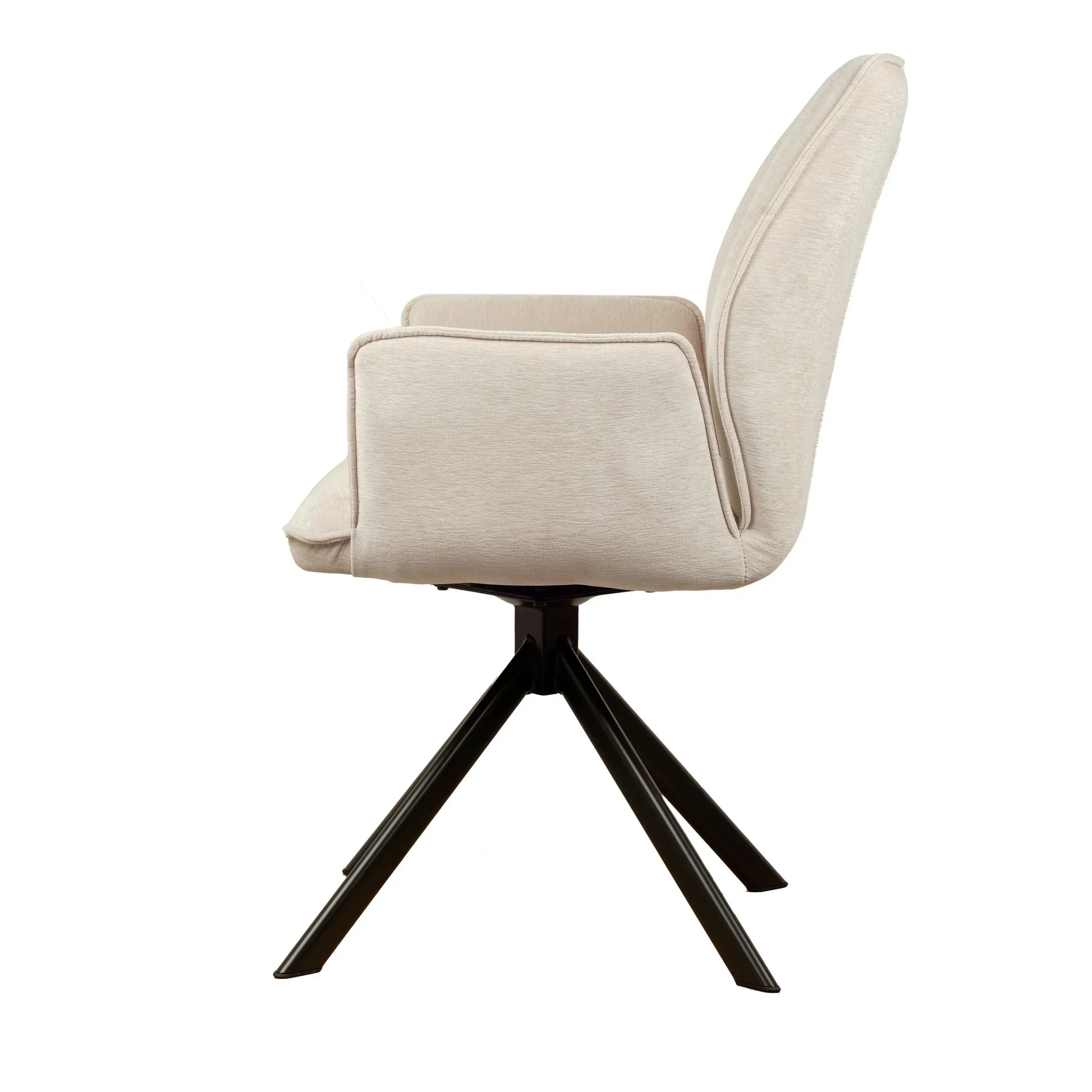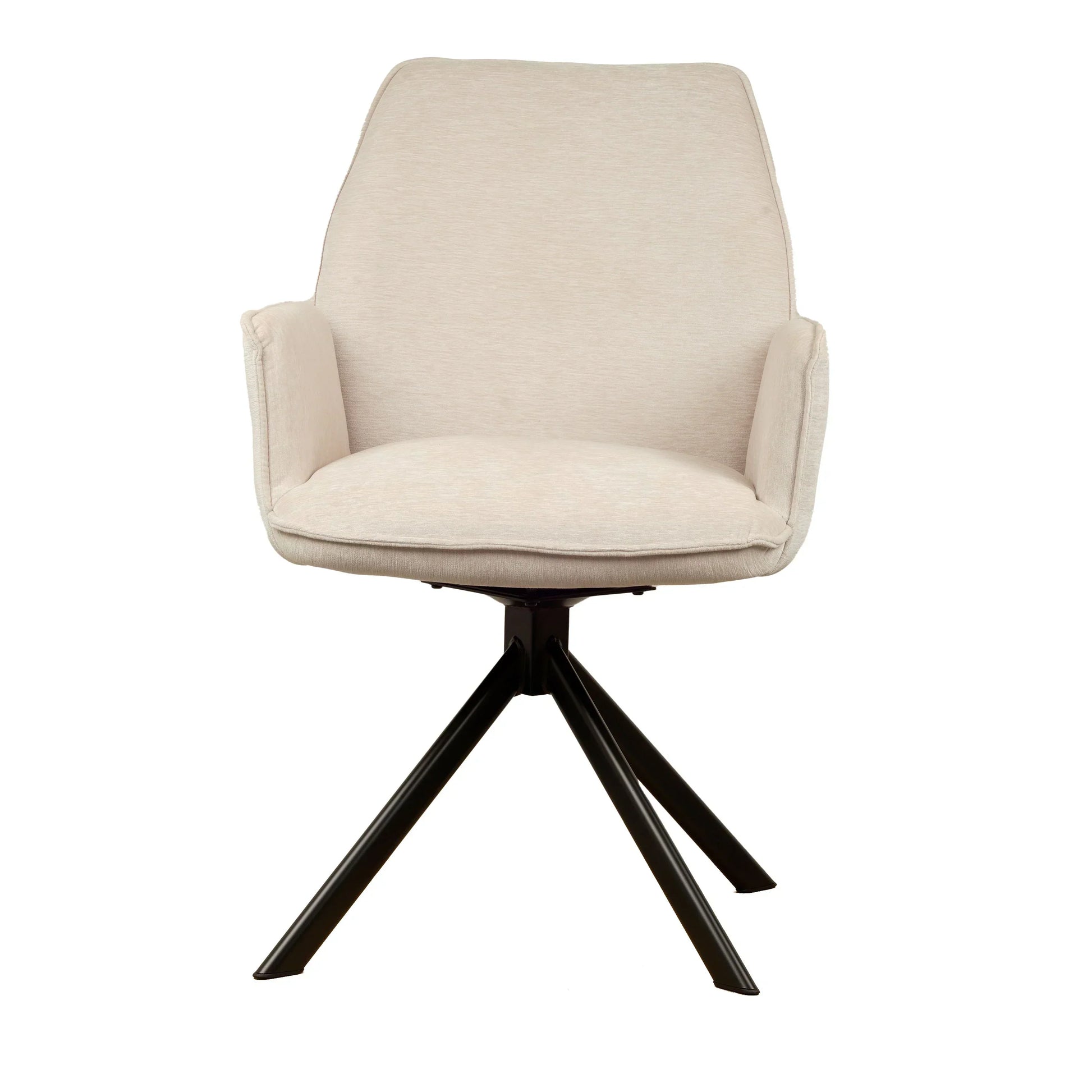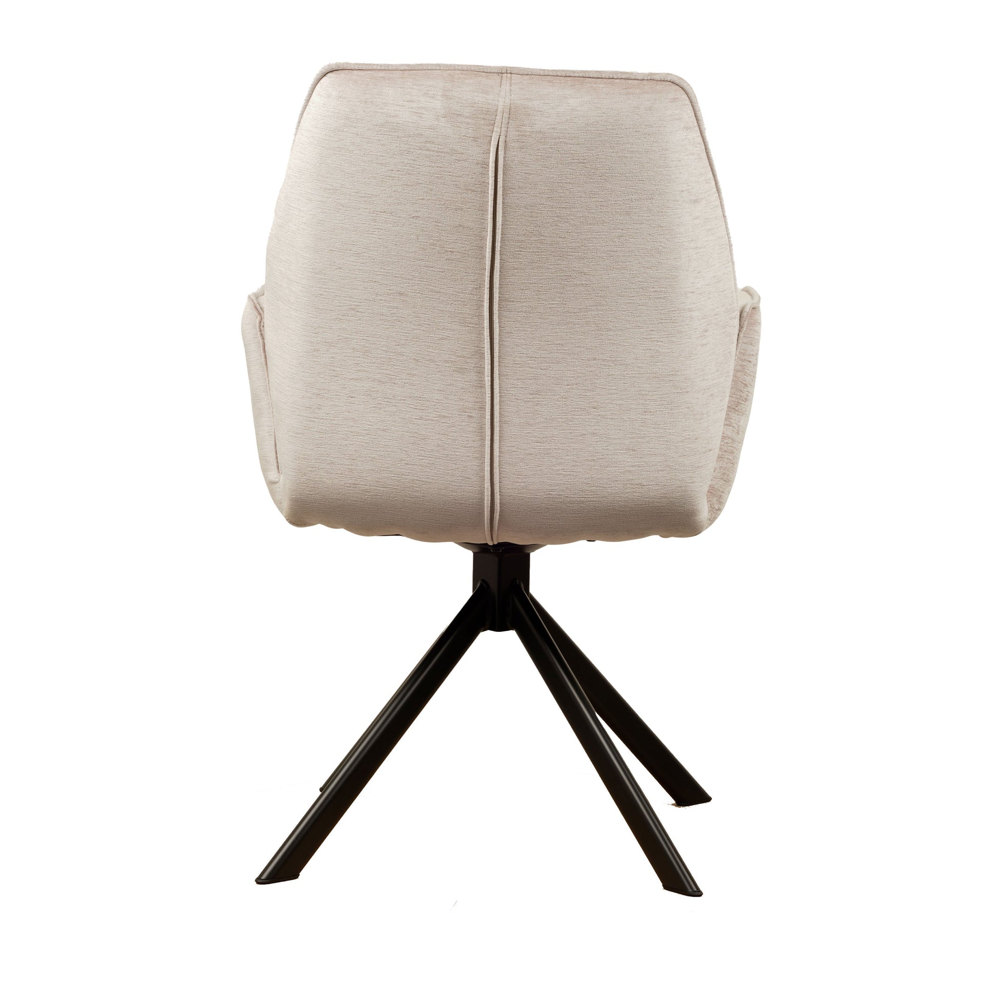 • Draaipoten: De stoel is uitgerust met zwarte metalen draaipoten die een draaibereik van 180 graden hebben. Dankzij een innovatief mechanisme keren de poten automatisch terug naar hun oorspronkelijke positie, wat zorgt voor een georganiseerde en nette uitstraling.