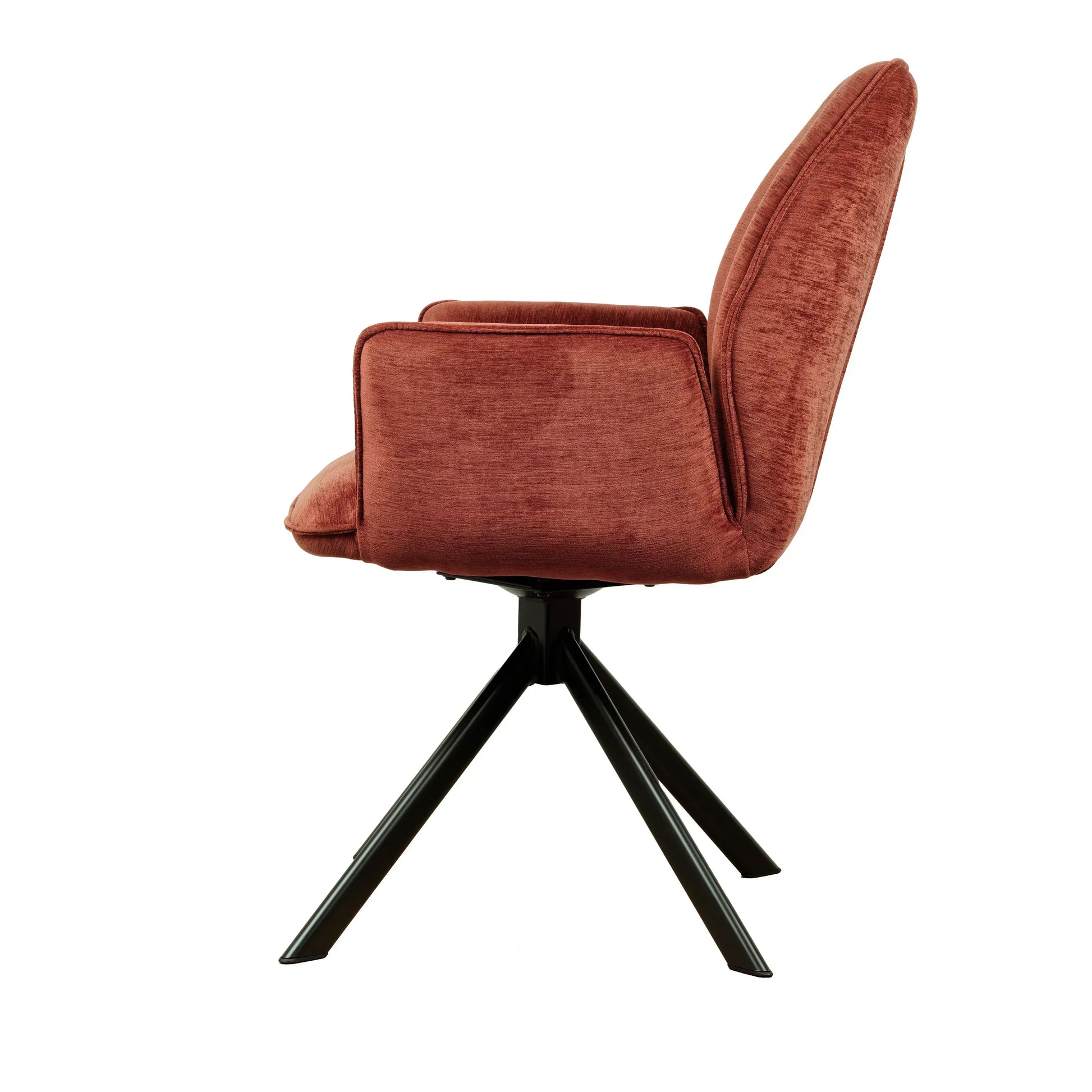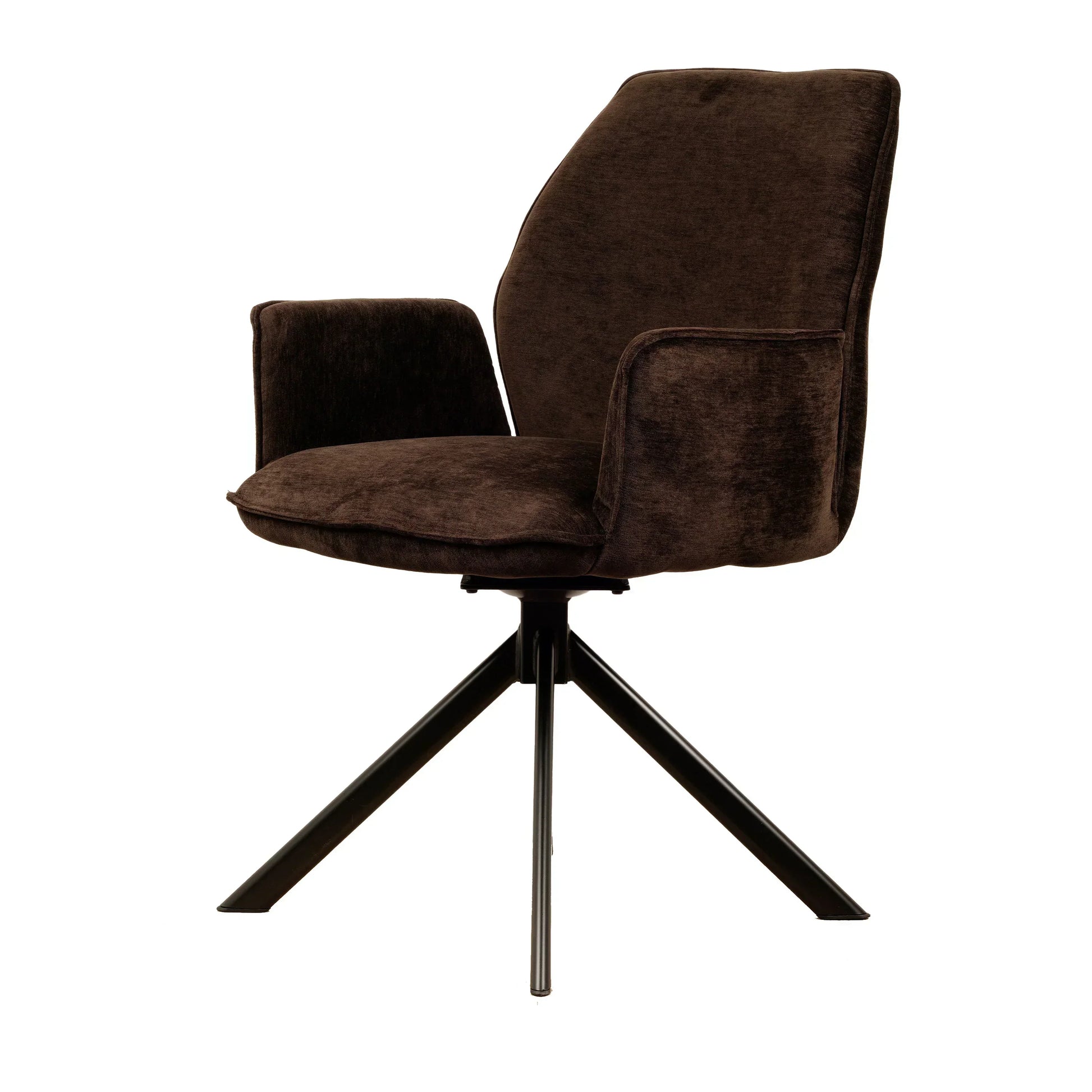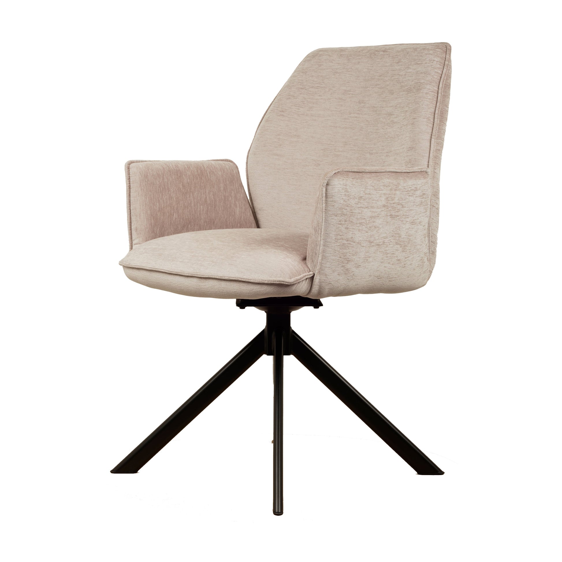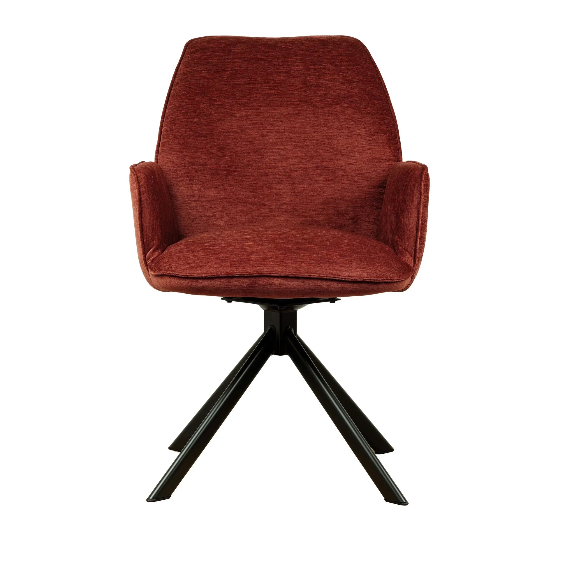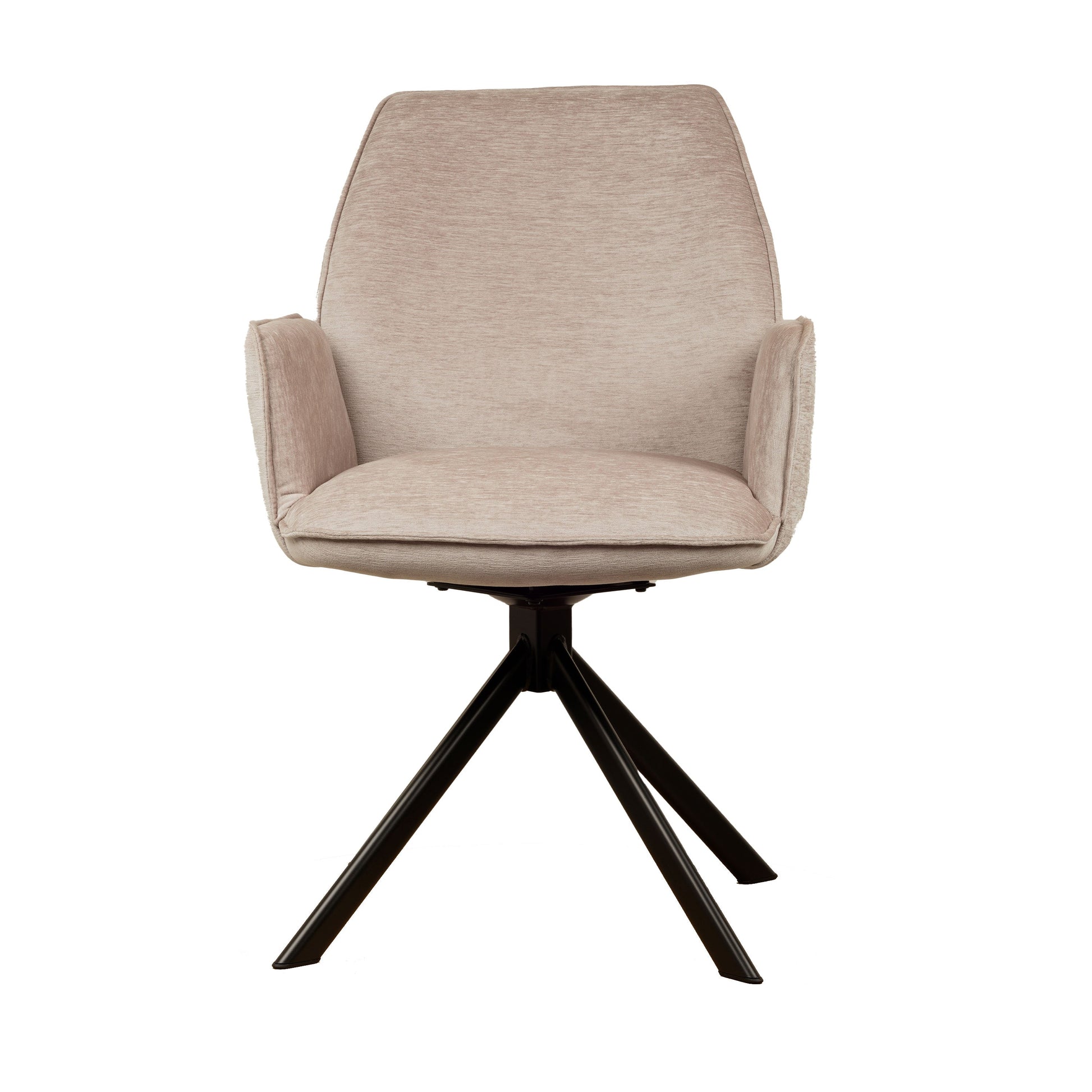 • Draaipoten: De stoel is uitgerust met zwarte metalen draaipoten die een draaibereik van 180 graden hebben. Dankzij een innovatief mechanisme keren de poten automatisch terug naar hun oorspronkelijke positie, wat zorgt voor een georganiseerde en nette uitstraling.