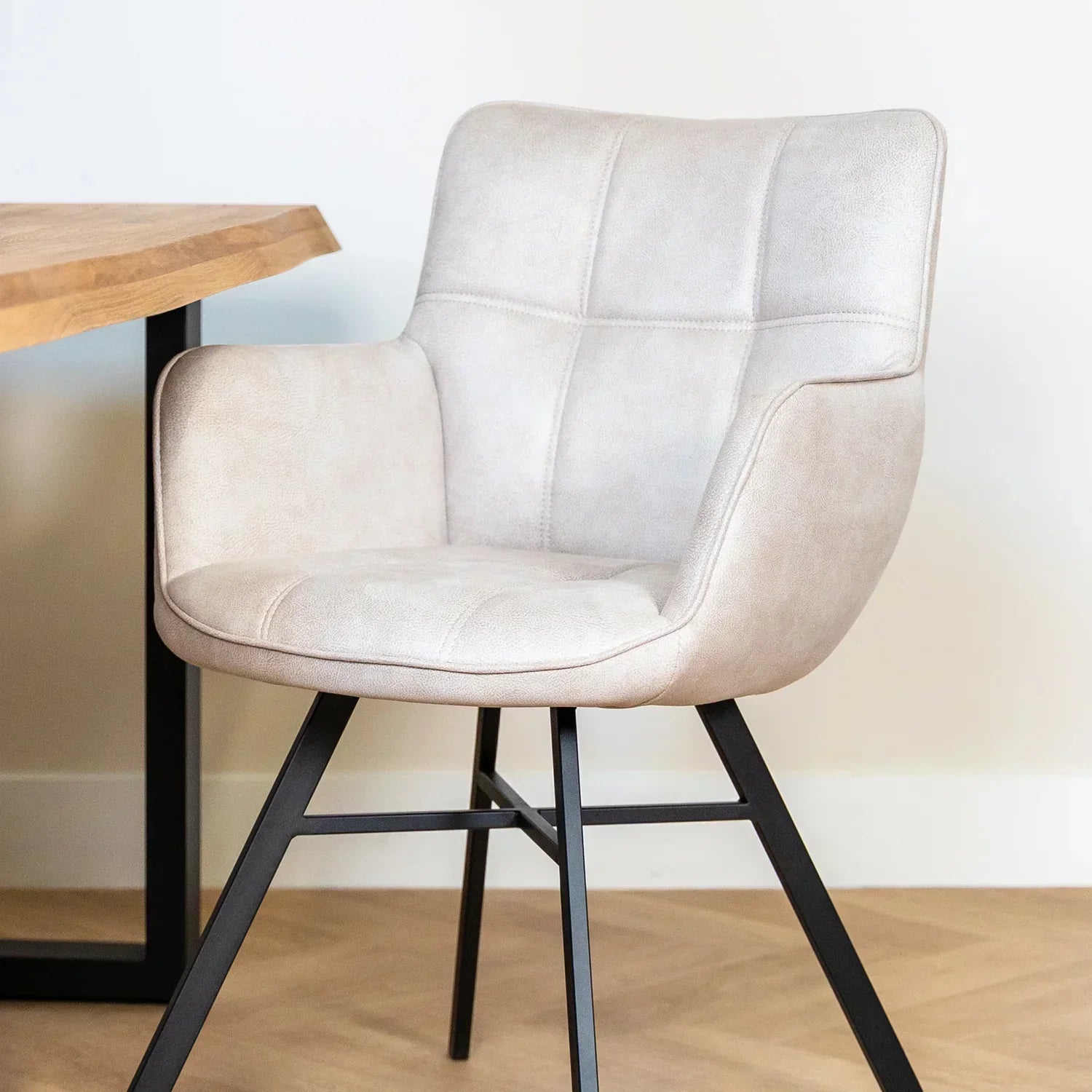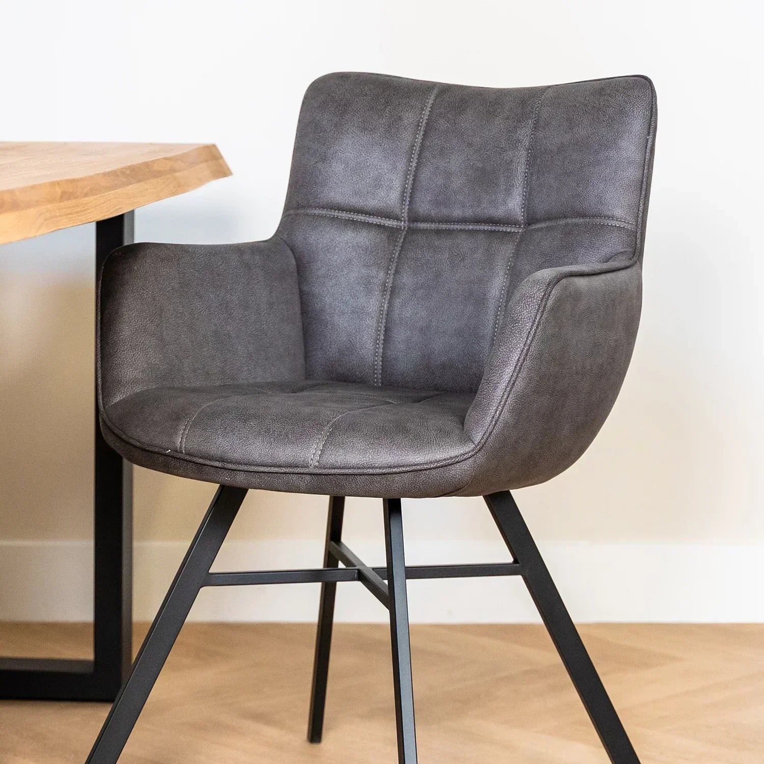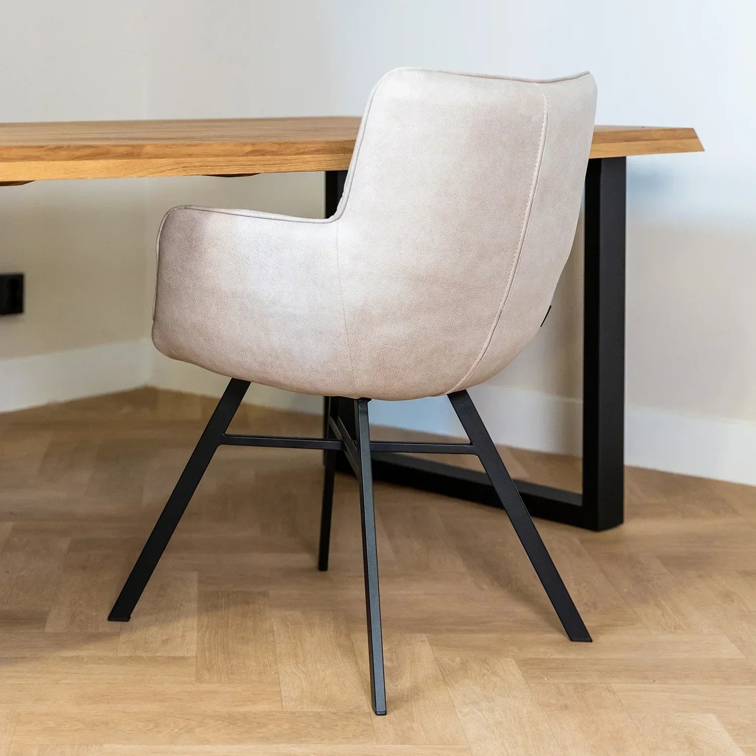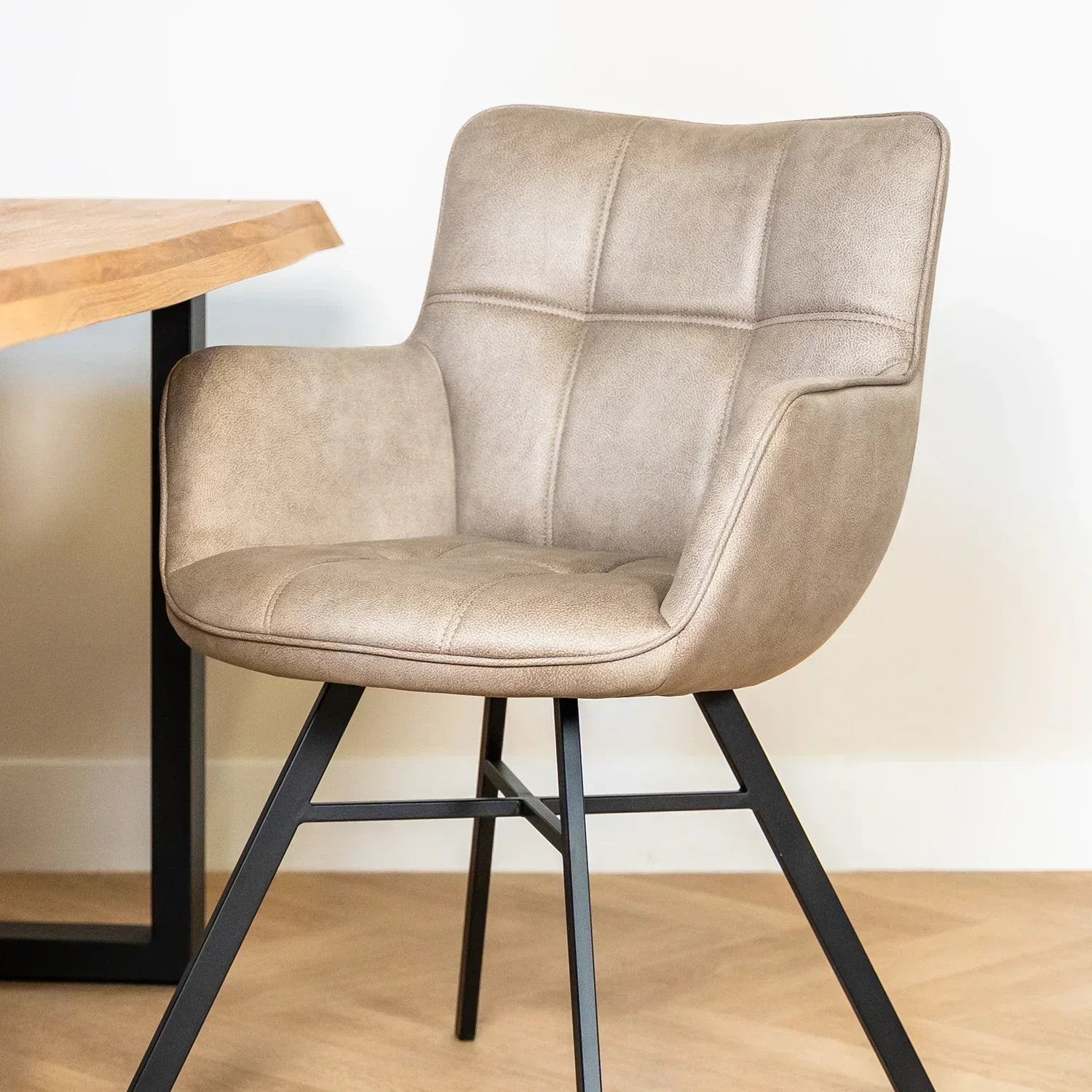 Eetkamerstoel microvezel Marcon is verkrijgbaar in de kleuren Thyme, Sand en Antraciet. Deze kleuren zijn ook prachtig te combineren aan de eetkamertafel. Door deze kleuren past er altijd wel één binnen het interieur.