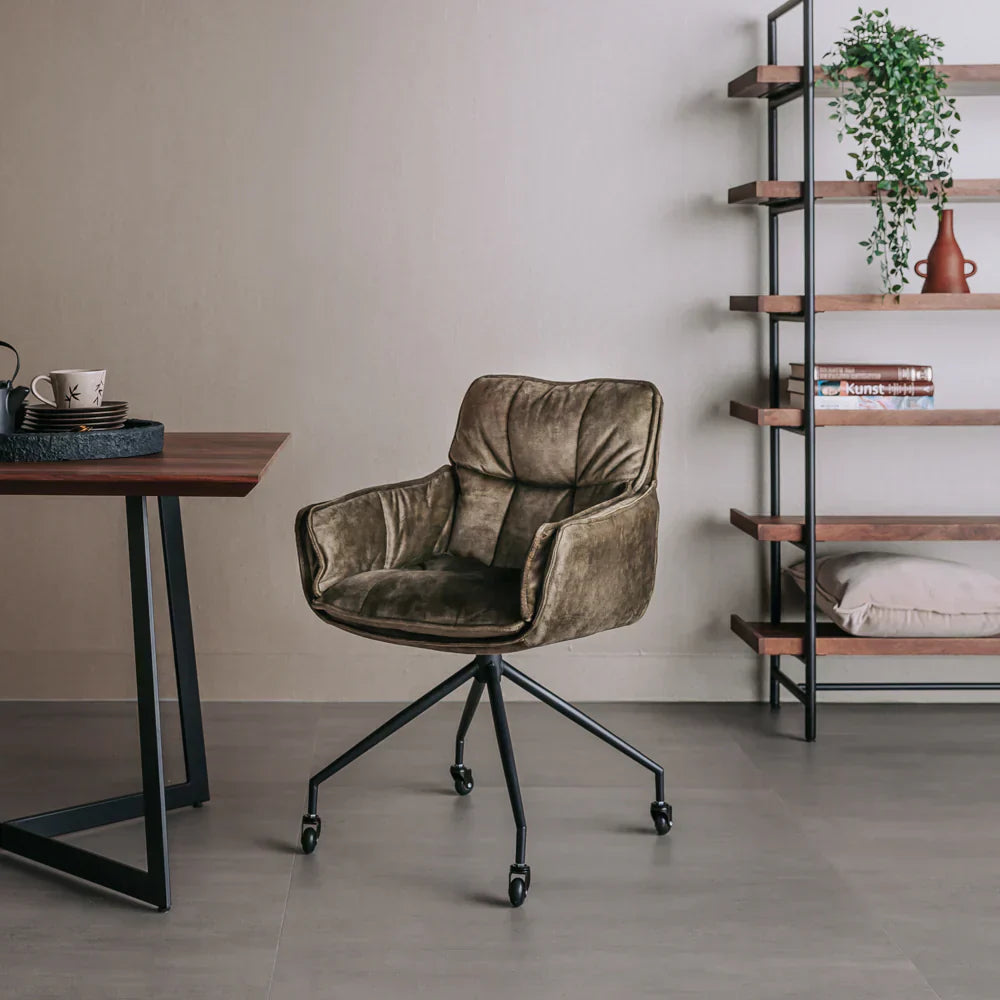 Ideaal aan deze eetkamerstoel is dat hij verrijdbaar is. Door de wielen onder het zwarte metalen onderstel kan je deze stoel makkelijk verplaatsen. Ook kan je deze stoel makkelijk bij de woonkamer betrekken wanneer er een extra zitplaats nodig is.