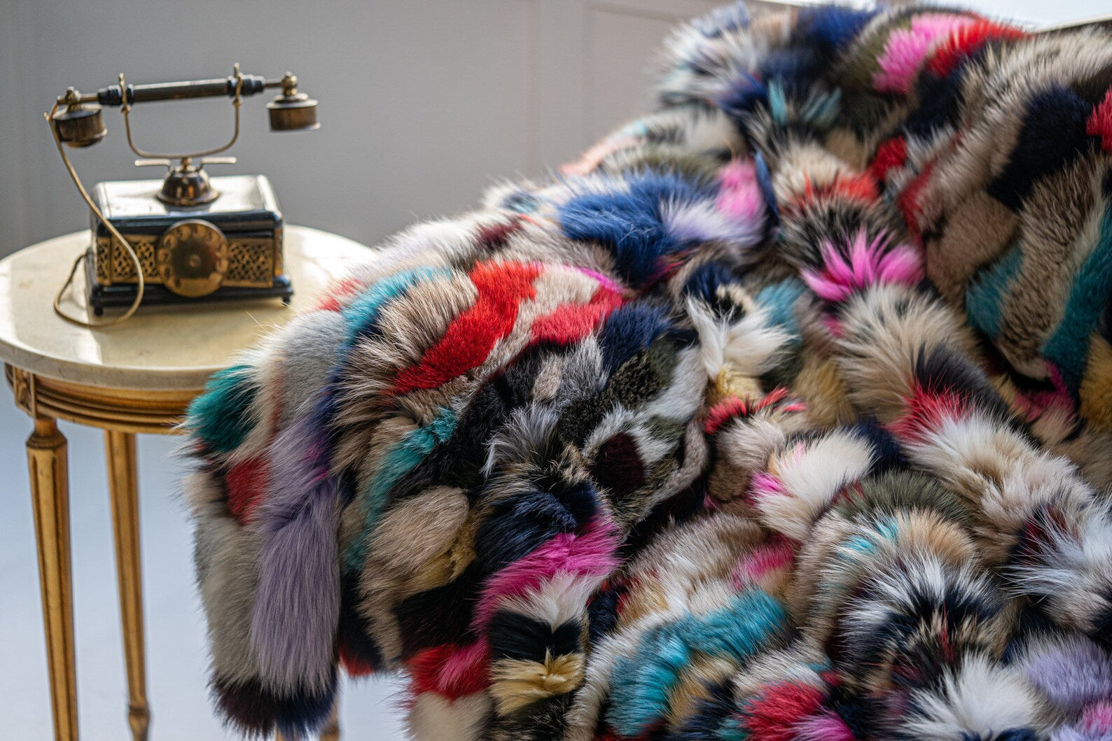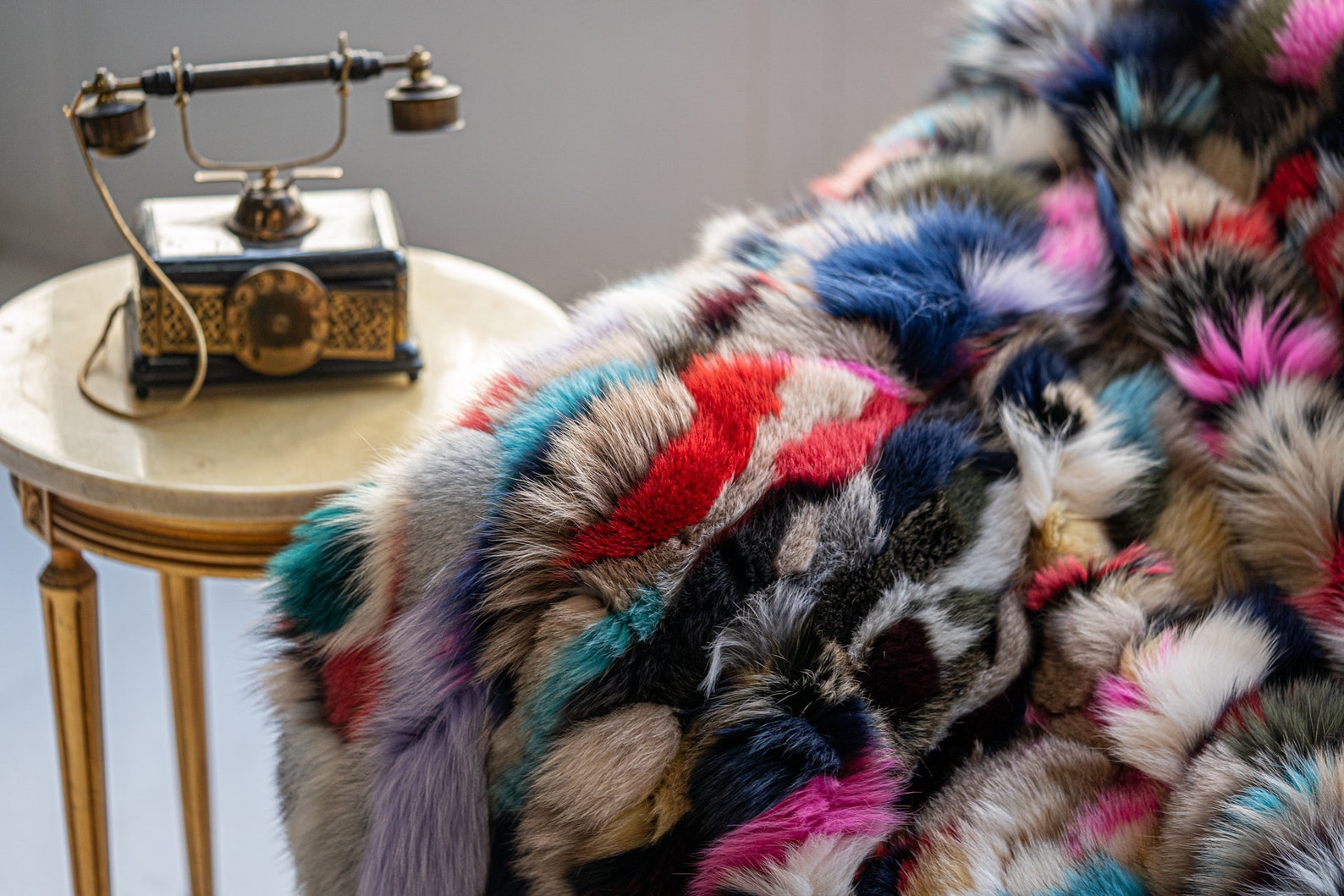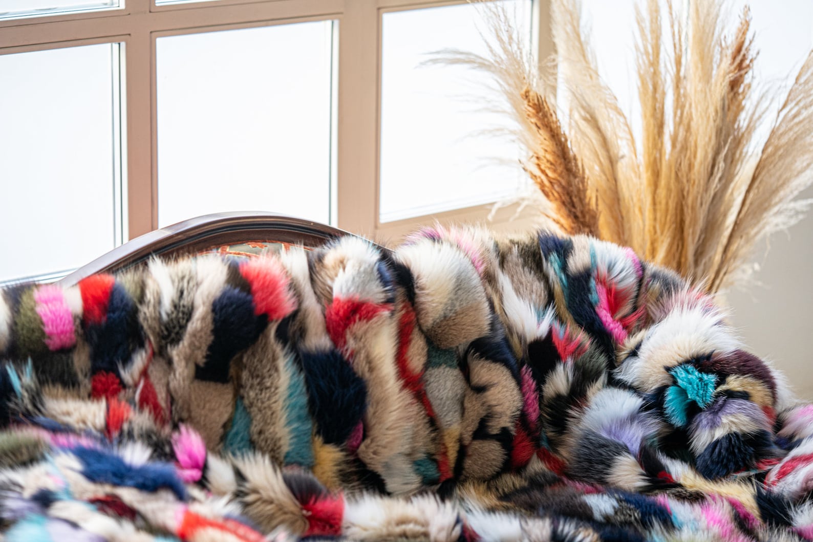 Deze prachtige nepbont deken in een verrassende mix van roze, lichtblauw, donkerblauw, beige, bruin, rood, paars en wit brengt een speelse, kleurrijke uitstraling in je interieur. Het zachte, luxe materiaal voelt heerlijk warm en knus aan, perfect voor een gezellige avond of een extra vleugje comfort op je bed of bank. De dynamische combinatie van kleuren creëert een levendige sfeer die moeiteloos past in verschillende stijlen, van eclectisch tot modern. Lichtgewicht, maar met uitstekende isolerende eigenschappen, zorgt deze deken voor de ideale balans tussen warmte en stijl. Een must-have voor wie van opvallende, kleurrijke accenten houdt in hun interieur!