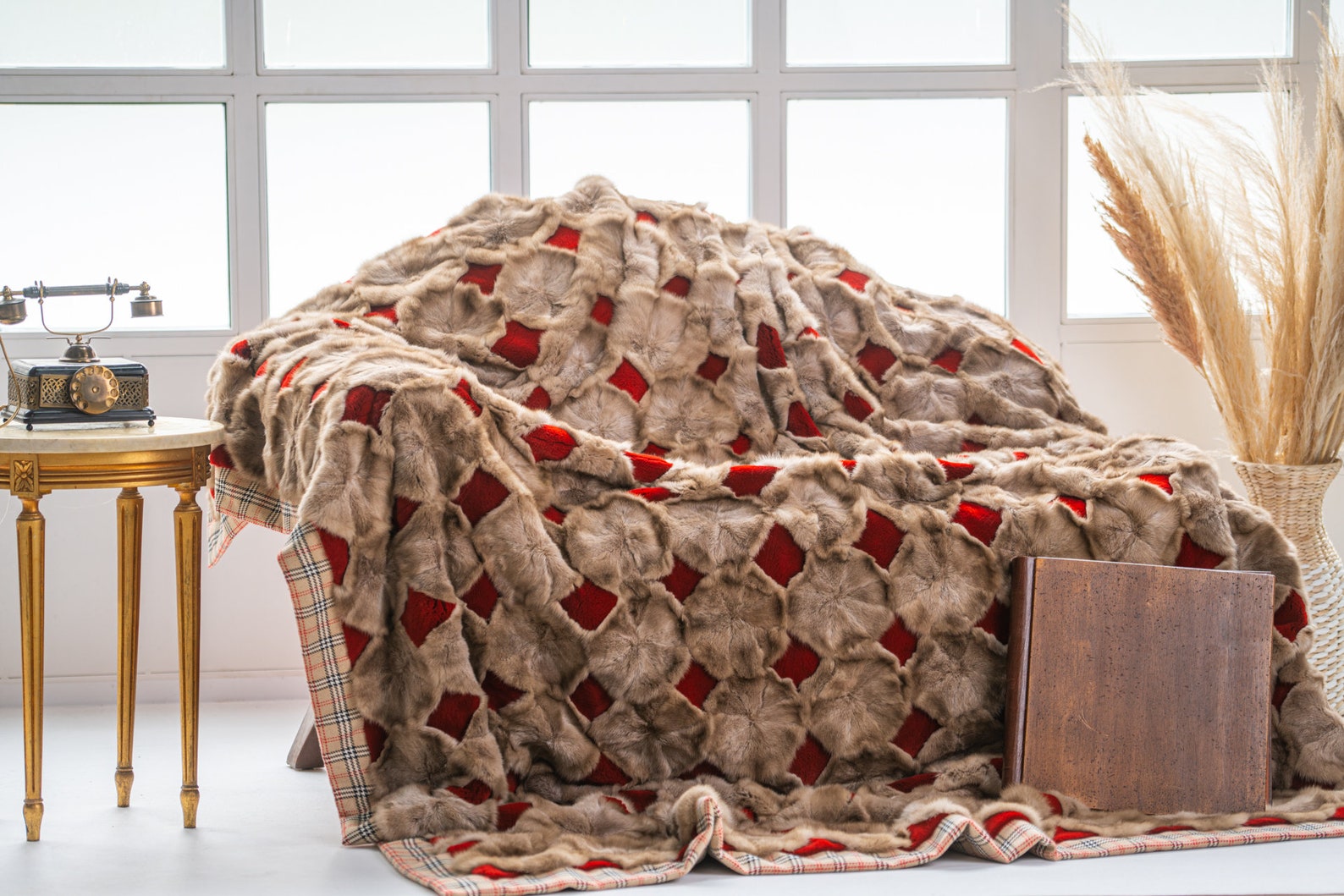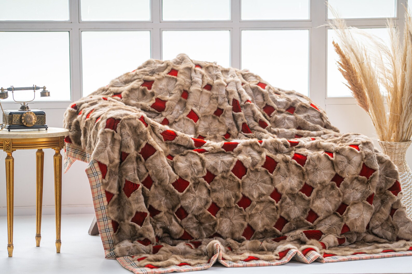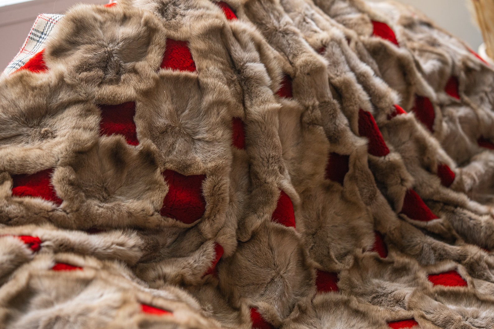 Luxe Deken Lichtbruin/Rood